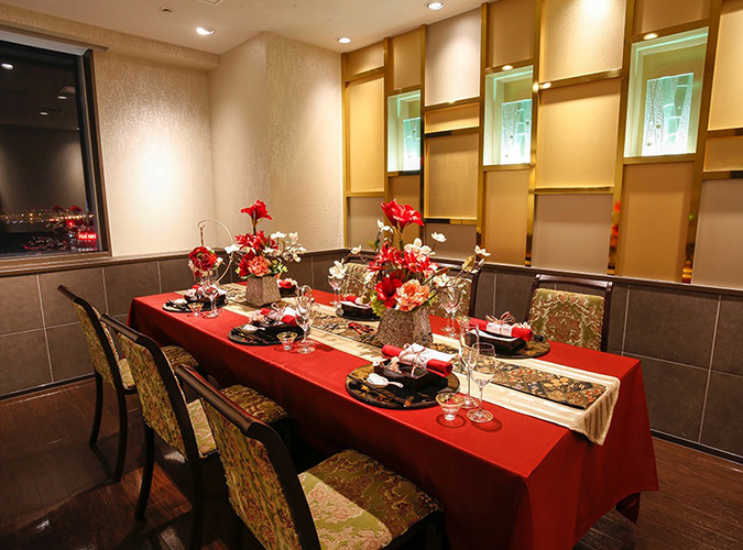 個性豊かな6個室を完備しており、個室へと続く廊下にも春夏秋冬を表現した4つのアートが飾られ日本の四季を見事に体現しています。
