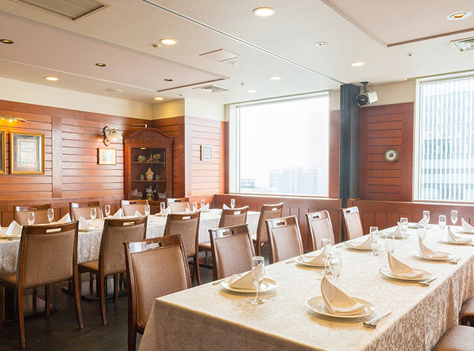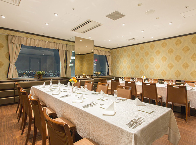 大きな窓から地上100mの大パノラマを見渡すことができる天空レストランです。